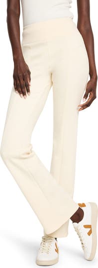 A bootcut profile and neat front seaming detail define pants cut from a smooth yet substantial scuba knit.
