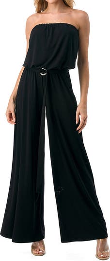 A strapless silhouette shows off your shoulders in a woven wide-leg jumpsuit that has you looking posh from day to night.