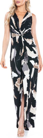 All eyes will be on your in this flowy maxi dress styled with a plunging twist-front neckline and daring front slit.