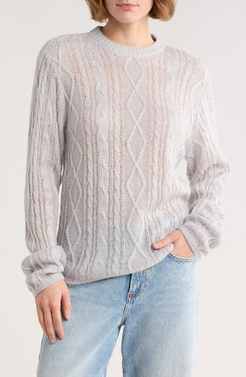 A loose fit hints at the relaxed comfort of this crewneck sweater knit with distinctive cable stitches from breathable knit.