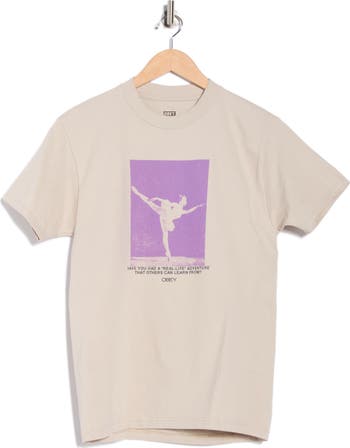 A poised dancer perfects her arabesque on the front of this crewneck T-shirt crafted from soft, breathable cotton.