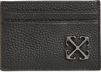Silvertone arrows authenticate a slim, black card case fashioned from richly pebbled leather.
