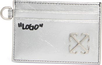 Signature multidirectional arrows and irreverent quotation marks brand this metallic leather card case that secures your most precious pieces of plastic.