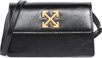 Intersecting arrow hardware brings house-signature shine to this structured leather crossbody that can be converted to a belt-bag style.