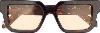 A gleaming crossed-arrows logo highlights the arms of these Italian sunglasses shaped in a square silhouette with a Havana-inspired pattern.