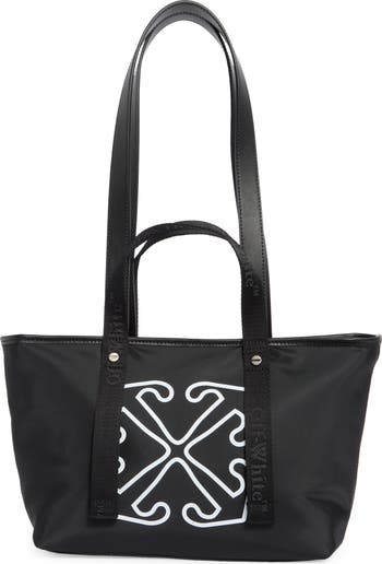 The iconic intersecting arrows and bookish-logo webbing handles put house-signature touches on this scaled-down tote made from sleek, lightweight nylon.