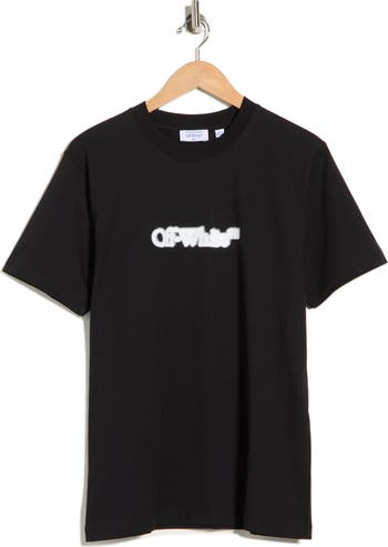 A fuzzy graphic logo lends the label’s signature streetwise distinction to this cool, all-cotton T-shirt cut in a slim fit.