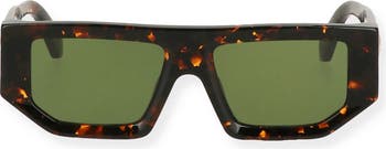 Sharp, rectangular frames give a modern edge to these Italian sunglasses fashioned with logo-embossed temples.