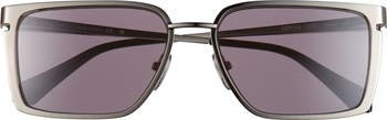 Embossed logos accent the frame of these Italian sunglasses shaped in a square silhouette and fitted with tinted lenses.