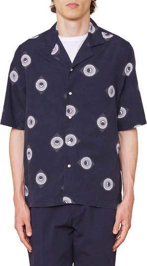 Eren Sun & Moon Print Short Sleeve Button-Up Shirt