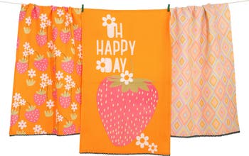 Add a whimsical touch to your home decor with this set of three kitchen towels made from absorbent waffle-textured cotton finished with playful graphic print.