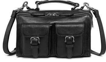 The Las Luna Crossbody is the perfect mix between cool and oh-so-cute! Available in trendy bright-colored hues, you'll want to get them in every color. We don't blame you. - Dual top handles - Detachable adjustable shoulder strap - Top zip closure - Exterior features 2 front pockets with buckle details - Interior features zip pocket and 2 slip pockets - Approx. 7" H x 10" W x 5" D - Approx. 4" handle drop, 18"-24" strap drop - Imported This item cannot be shipped to Canada.