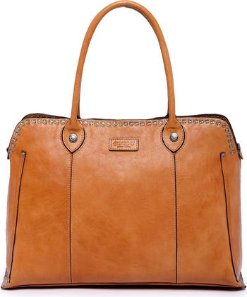 This subtly elegant carryall features double top handles for ultimate versatility and comfort.