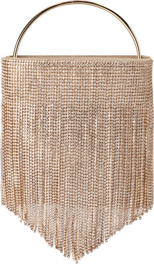 Crystal-encrusted fringe makes a glamorous statement on a soirée-ready bag featuring an optional chain strap for hands-free wear.