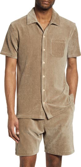 Riviera Corduroy Short Sleeve Organic Cotton Blend Button-Up Shirt