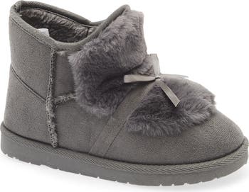 Keep your kiddo's feet warm in this slipper boot lined with faux fur and adorned with a dainty bow on the vamp.