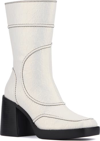 Bold stitching creates a captivating affect on this slender boot that's modernized by a squared toe.