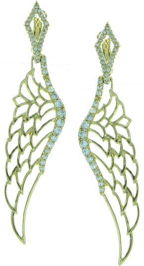 Cutout angel wing details sparkle with crystal accents to create these elegant drop earrings.