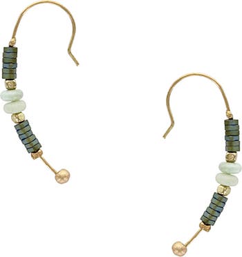 An assorted of beads in varied textures and tones gives these modern drop earrings a dash of earthy, organic style.