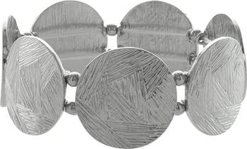 Textured discs catch the light on this sculptural stretch bracelet that brings bold shine to your day- or night-out looks.