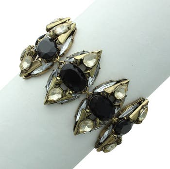 Crystals create unique geometric stations that make up a striking bracelet that is sure to grab attention.