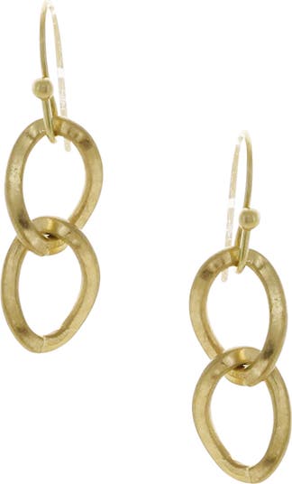 Double chain-link drops dipped in a brassy finish create earrings that strike the perfect balance between subtle and statement.