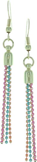 Colorful plated ball chain details create unique dangle earrings that add a pop of color to any look.