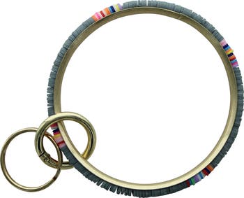 Colorful clay beads line this 14k gold plate bangle for stack-friendly styling.