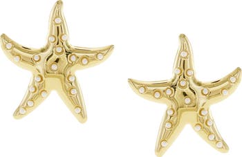 Add a touch of coastal charm to your lobe look with these starfish-shaped stud earrings covered in luminous faux pearls.