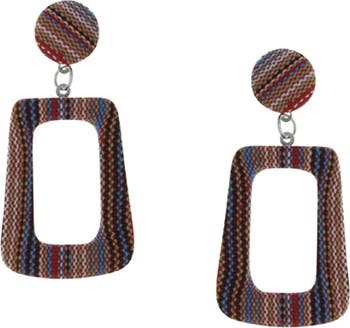 Drop earrings crafted from supersoft velvet feature a multicolored pattern for eye-catching appeal.