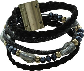 Layer on the texture with this faux-stack bracelet blending soft faux leather and glossy-finish beads. It's a bold, boho-inspired stack that adds instant edge to any outfit.