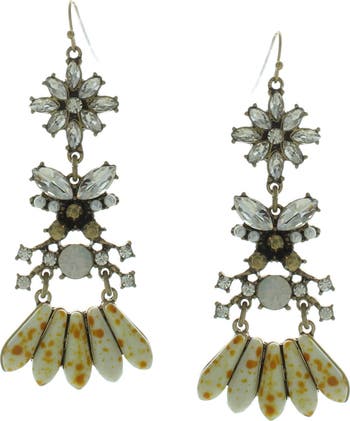 A pair of prong set crystal drop earrings arranged in a floral shape offer a bold statement for any look.