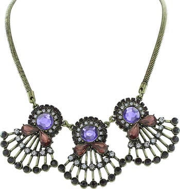 Faceted crystals bring sparkle and shine to this gold-plated necklace with fan-shaped pendants.