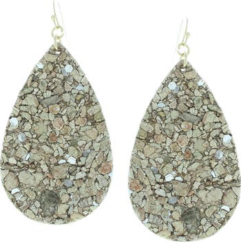 Teardrop-shaped cork dangles of gold-plated fishhooks on this pair of earrings.