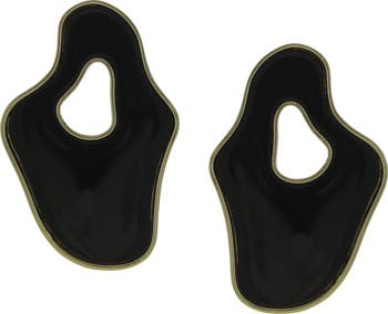 A sculptural silhouette adds abstract appeal to these artful earrings designed with glossy resin and a gleaming frame.