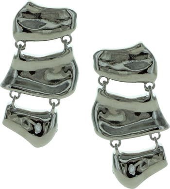 Molten, concave discs catch the light on the stunning sculptural drop earrings that bring bold shine to any look.