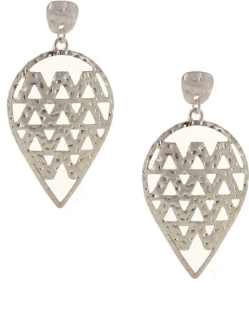 A hammered texture adds dimension to drop earrings with openwork detailing for eye-catching appeal.