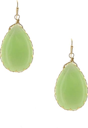 Bring a bold pop of color to your day with swingy teardrop earrings featuring prong-set faux-stone cabochons.