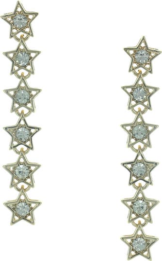 Show off celestial shine with linear earrings suspending gleaming stars centered by sparkling crystals.