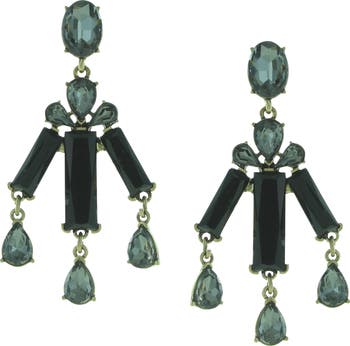 Crystals create unique chandelier earrings that add geometric style to any dressy look.
