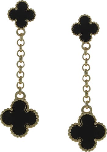 Add a touch of luck to your lobe look with these drop earrings accented with beaded onyx clovers.