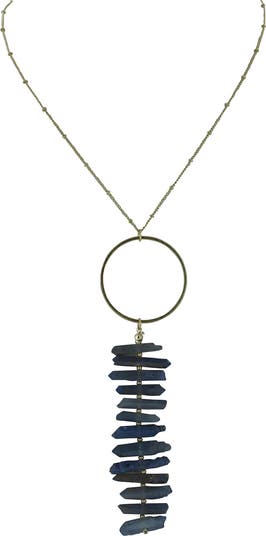 - Gold-tone station chain with ring and layered stone drop pendant necklace