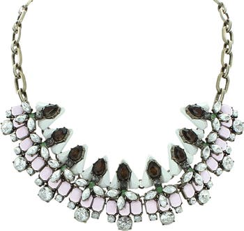 Soft pink stones sparkle amongst crystal details on a statement making necklace that is sure to grab attention.