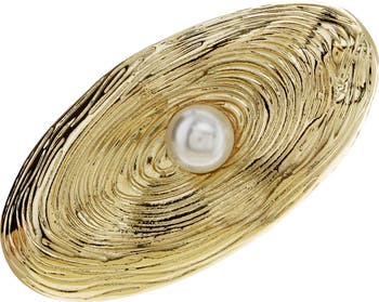 Show off mesmerizing shine with this ripple-textured cocktail ring centered by a lustrous faux pearl.
