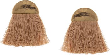 Add boho charm to your lobe look with these gleaming arched earrings featuring textile tassel accents.