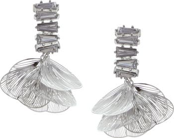 Petal-like drops deliver a dose of sweetness to polished earrings complete with shimmering crystals along the posts.