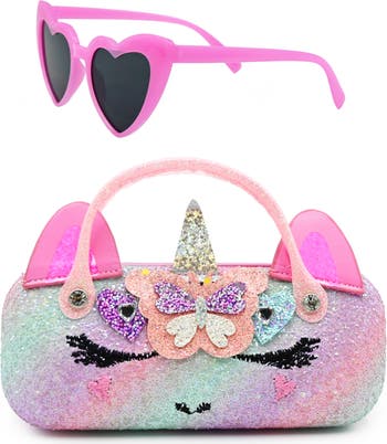 Sunglasses with Butterfly Glitter Case