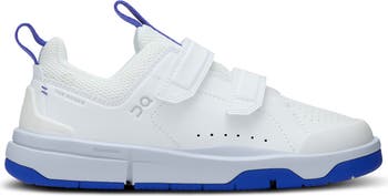 Designed in collaboration with tennis icon Roger Federer, this kid-size sneaker topped with sporty mesh sits on cloud-like cushioning for easy comfort. It's made with recycled materials and easy-on/stay-on straps to keep every step smart.