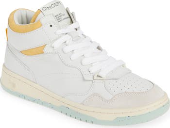 Colorblocked leather and recycled-nylon panels compose a sporty high-top sneaker grounded by sporty two-tone sole to offer a cool and casual look.
