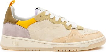 Contrast overlays and speckled detailing refresh a lace-up sneaker set on a cushioned memory foam footbed with arch support.
